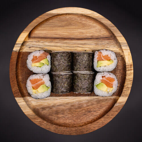3 st. zalm nigiri, 8 st. zalm avocado maki, 8 st. zalm maki