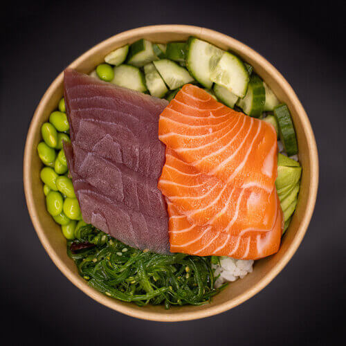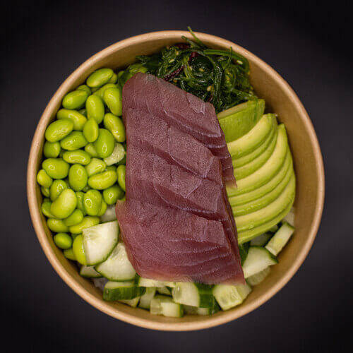 Tonijn, avocado, spicy mayonaise, spicy poeder
