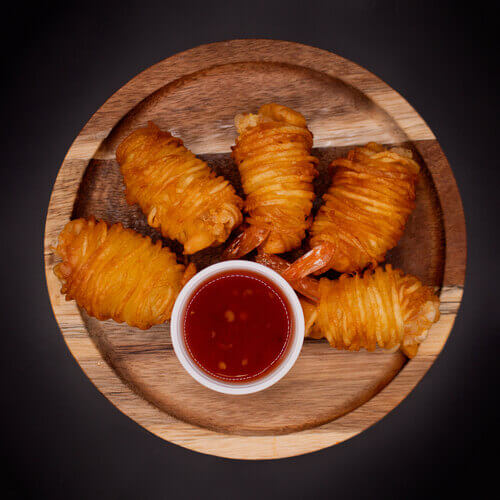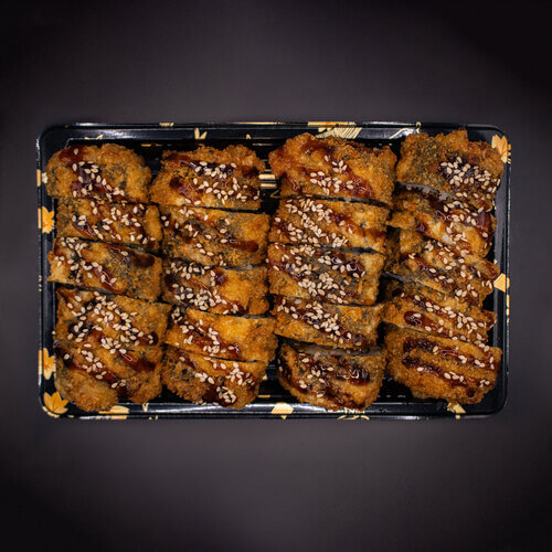 5 st. crispy chicken, 5 st. crispy zalm, 5 st. crispy tonijn , 5 st. crispy vega