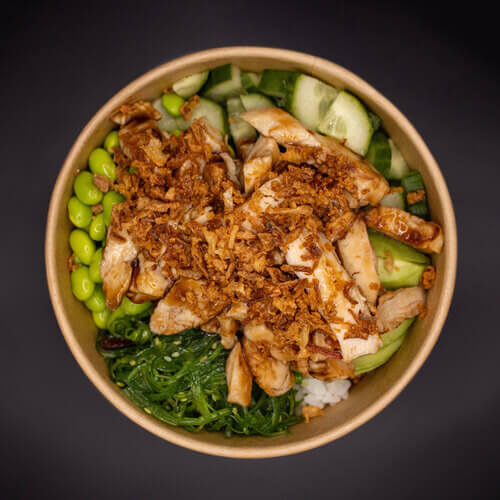 Gegrilde kip, komkommer, sesamzaad, teriyaki saus