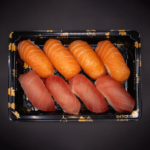 4 st. zalm nigiri, 4 st. tuna nigiri